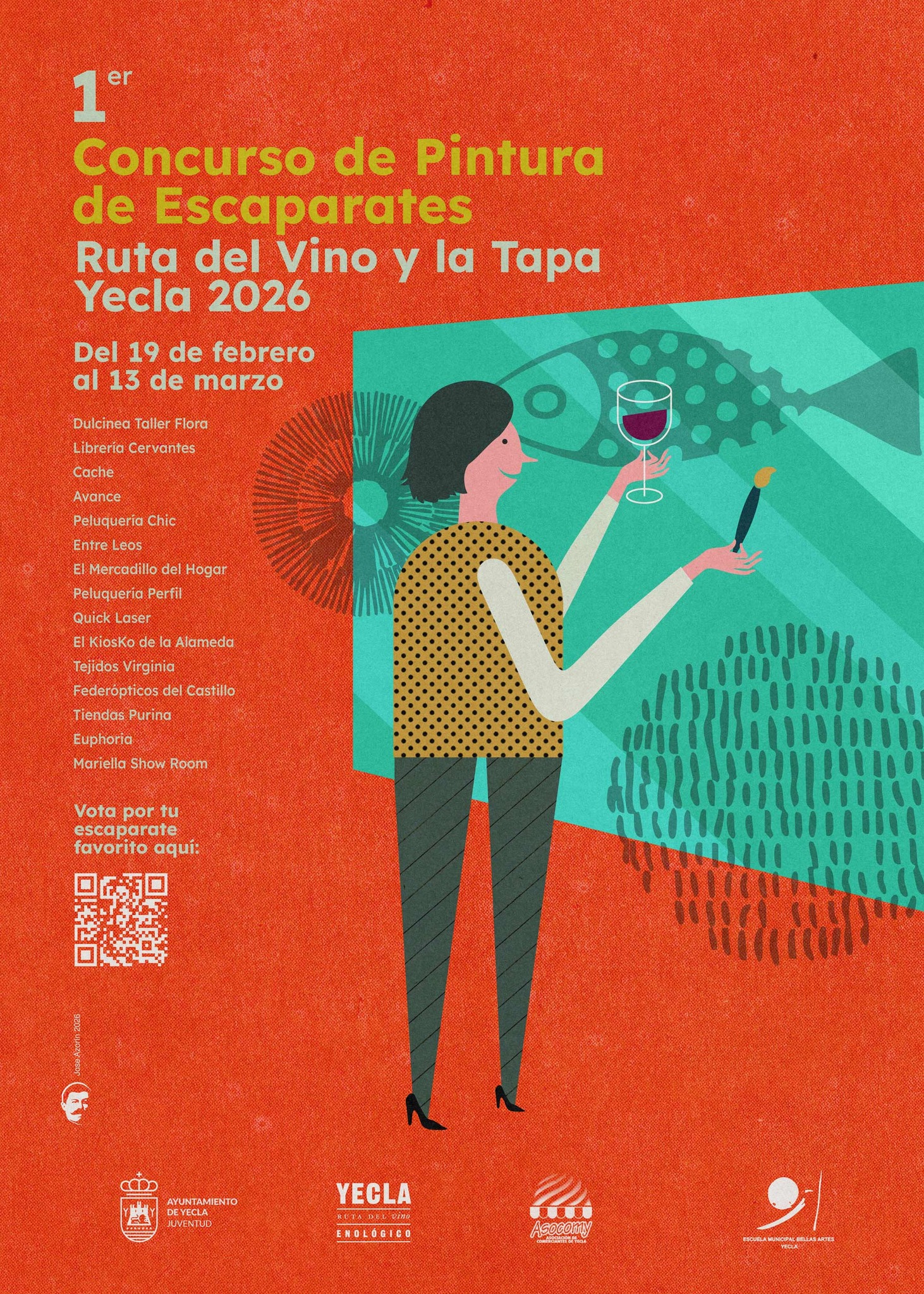 Como novedad en la 13ª edición, la Ruta del Vino y la Tapa incorpora el I Concurso de Pintura de Escaparates, una propuesta que amplía el alcance del evento integrando arte, comercio local y participación ciudadana. A través de intervenciones artísticas realizadas en distintos establecimientos de Yecla, se refuerza la dimensión cultural y visual de la Ruta, contribuyendo a dinamizar el tejido comercial y a enriquecer la experiencia de vecinos y visitantes.